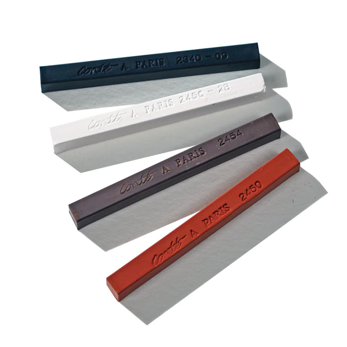 Conté à Paris Sketching Crayons are professional-grade, square-shaped sticks made of pigment, clay, and binder, offering a texture between charcoal and pastel, ideal for rich shading, detailed lines (using the edge), and large area coverage (using the flat side) in monochrome or color, available in traditional colors like black, white, sanguine (red chalk), and bistre (brown). They are known for blending well and creating strong values, with a medium-soft feel perfect for sketches and finished works.