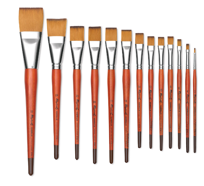 These short handle brushes feature brush heads of soft synthetic hair with fine tips and excellent carrying capacity and strength. They are economical, durable and easy to clean. Excellent for watercolor, acrylic, gouache, egg tempera and oil painting.